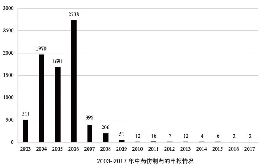 1985年、1992年、1999年頒布的《新藥審批辦法》都只講新藥,未將仿制藥的審批納入管理。SDA成立后的2002年,《藥品注冊管理辦法》(試行)頒布,首次將仿制藥注冊納入法規(guī)體系,中藥仿制藥成為《辦法》中的中藥分類的第11類:已有國家標準的中成藥和天然藥物制劑,對這類藥品基本是減免動物試驗和臨床試驗,就是對藥學研究的要求也非常寬松。